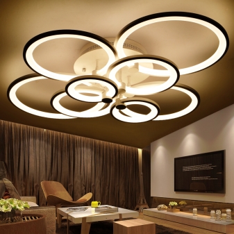 يتم استدعاء عرض أصلي وغير عادي للغاية “حلقة”: حصلت على اسمها بالطبع بفضل النموذج. هذا تصميم حديث يتكون من حلقة واحدة أو اثنتين أو ثلاث حلقات يتم فيها تثبيت تركيبات الإضاءة. يتم إصلاحها إما بالتساوي ، واحدة تلو الأخرى ، أو تكون دوائر متشابكة. يمكن تزيينها بأحجار زخرفية مختلفة ومطلية بمجموعة متنوعة من الألوان ، ولكن معظمها من الذهب والفضة. ستضيف الثريا من هذا النوع سحرًا غير عادي إلى غرفة المعيشة أو غرفة النوم وستبدو باهظة الثمن وفاخرة..