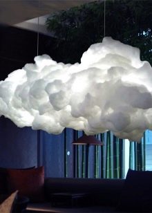 وأخيرًا ، أحد الحلول الأكثر إبداعًا يسمى “سحاب”. غالبًا ما يتم ذلك بيديك باستخدام الصوف القطني وعاكس الضوء ومسدس الغراء. يتم لصق الكثير من الصوف القطني على عاكس الضوء ، مما يؤدي إلى تكوين شكل سحابة ، ثم يتم وضع مصباح بالداخل (ويفضل أن يكون أزرق). اتضح مصباح أصلي للغاية وفريد من نوعه..