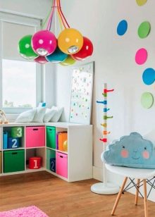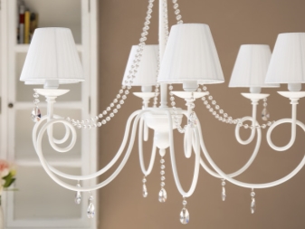 ربما يجدر بنا أن نبدأ بشكل الثريا ، والذي يعتبر بحق مثاليًا لأي غرفة. هذا مصباح بعدة ظلال (أو قرون) ، والتي يتم توجيهها لأسفل. يسمح هذا التصميم بعدم تسخين درجة حرارة السقف كثيرًا. أيضًا ، يمكن استكمال هذه الثريا وتزيينها بعناصر زخرفية مختلفة: هذه كرات متعددة الألوان أو شفافة أو فراشات أو زخارف بألوان مختلفة..