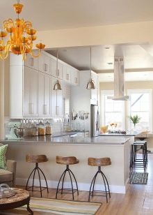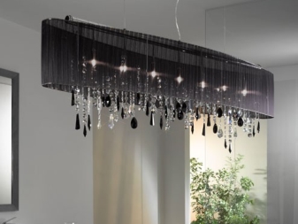 أحد الخيارات الكلاسيكية هو أيضًا المصابيح المستطيلة: هذا الشكل عالمي حقًا ويمكن أن يتناسب مع أي مساحة. ولكن إذا كنت لا تزال ترغب في تزيين الداخل بثريا ، فعليك اختيار حل أكثر إثارة للاهتمام.