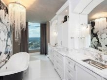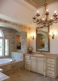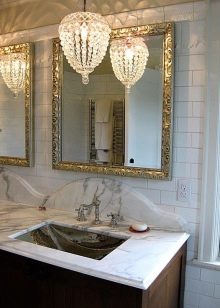 يعد الكريستال لمثل هذه الغرف دليلًا على الفخامة ، لذلك تزين هذه المصابيح الحمامات الفسيحة ، والتي غالبًا ما تكون غرفًا كبيرة تجمع بين الحمام وغرفة المرحاض..