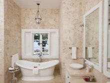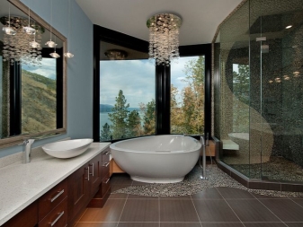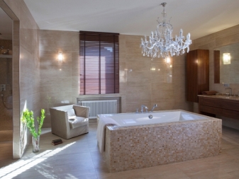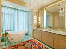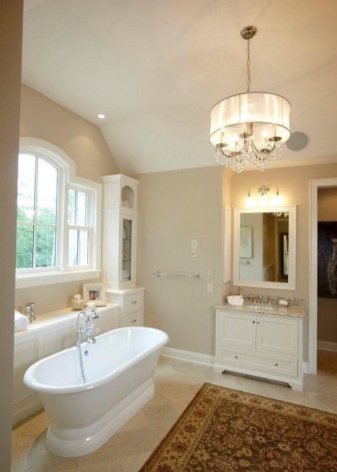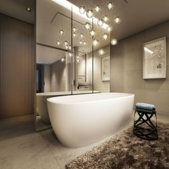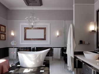 يعد التصميم الداخلي للحمام موضوعًا خاصًا يتطلب مقاربة إبداعية ، مع مراعاة سلامة الإنسان ، والفروق الدقيقة في غرفة معينة ، وارتفاع السقف ودرجة الإضاءة (لا تختلف بعض الحمامات عن غرف المعيشة ، مع وجود شبابيك). لفهم كيفية ملاءمة المصباح المركزي بشكل متناغم مع الداخل, يمكنك الانتباه إلى أمثلة التصميم الجميل: