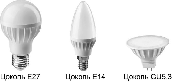 أغطية المصباح من نوعين: المسمار ، الذي يُشار إليه بالحرف E الذي يشير إلى القطر ، والدبوس – بالرمز G ورقم يشير إلى المسافة بين المسامير في الجدول بالمليمترات.