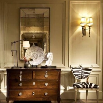تلعب وظيفة الإضاءة الزخرفية دورًا مهمًا. يجب أن يكون لون المصباح دائمًا متوافقًا مع المكونات الأخرى للتصميم الداخلي ، لأن ظله يحمل الحمل الدلالي الرئيسي للغرفة. سيبدو الأمر سخيفًا إذا كان اللون الرئيسي هو الذهب الكلاسيكي ، وبدلاً من الثريا الكريستالية سيكون هناك مصباح أرضي بلون أسود صارم.