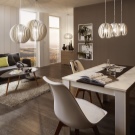 غالبًا ما يتم تثبيته في الغرف الحديثة الثريات مع عاكس الضوء أو مصابيح أرضية, التي تنشر الضوء الناعم والدافئ ولها تأثير مفيد على البصر ، وتخلق بيئة مريحة وتكمل التصميم ونقطة مضيئة في الغرفة.