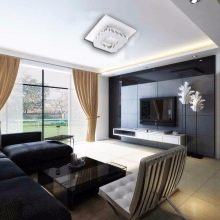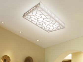 - أجهزة السقف مصممة للإضاءة الداخلية, أكثر رشيقة وأنيقة. عند اختيار أجهزة الإضاءة هذه ، من الضروري الانتباه ليس فقط إلى جودة المواد التي صنعت منها ، ولكن أيضًا لتصميمها. يجب أن يبدو المصباح المربع عضويًا وجذابًا من الداخل ، دون الخروج من المجموعة العامة..