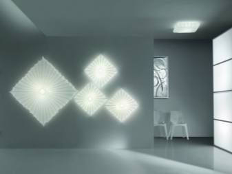 ومع ذلك ، هناك أيضًا تركيبات راحة ضخمة حقًا. يمكن استخدام هذه الأجهزة كإضاءة رئيسية للغرفة ، مدعومة بأضواء كاشفة صغيرة مربعة الشكل..