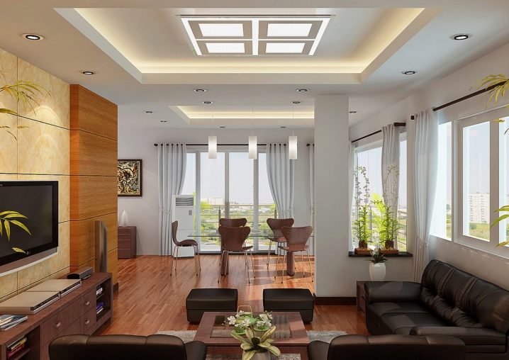 يمكن تركيب عدة ثريات سقف مربعة في منطقة واحدة في وقت واحد. بمساعدة الترتيب المختص لهذه الأجهزة ، يمكنك توزيع اللهجات على مناطق وعناصر داخلية معينة.