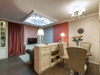 - الأحجام. بالنسبة للغرفة الصغيرة ، لا يُنصح بشراء مصابيح كبيرة جدًا وكبيرة الحجم. من الأفضل استبدالها بنماذج صغيرة ووضعها بشكل صحيح في أجزاء مختلفة من السقف..