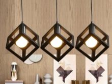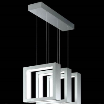 - بالنسبة للغرف الأكثر اتساعًا ، يمكنك استخدام تركيبات أكثر إثارة للإعجاب. مع الهياكل المعلقة. تم تجهيز هذه الخيارات بأغطية مصابيح مربعة جميلة تبدو مثيرة للاهتمام ومبتكرة للغاية. يتم تثبيت هذه الأجزاء على أدلة خاصة أو سلاسل ضيقة.