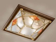 أيضًا ، يمكن أن تحتوي المصابيح المربعة على ظلال بارزة وحجمية ، بإطارات جميلة ، مزينة على الجانبين بأفلام زخرفية بأنماط مختلفة.