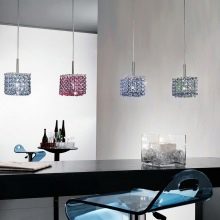 - المصابيح الهندسية التي تنتجها من الكريستال النبيل. تشتهر هذه المادة بلعبها المذهل للضوء ، والذي يجذب الانتباه وينشط الفضاء. ستبدو تركيبات الإضاءة الأنيقة هذه رائعة في مجموعات أبهى وكلاسيكية..