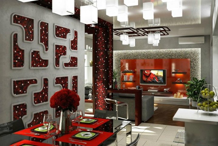 تقنية التصميم هذه مفيدة بشكل خاص في شقة الاستوديو.. في مثل هذه المساكن ، لا توجد أقسام تفصل الغرف عن بعضها البعض ، لذلك من الضروري تقسيم المناطق فيها بشكل مستقل. باستخدام العديد من المصابيح المربعة العصرية ، يمكنك تقسيم المساحة المتاحة بشكل غير ملحوظ إلى عدة مجالات وظيفية.