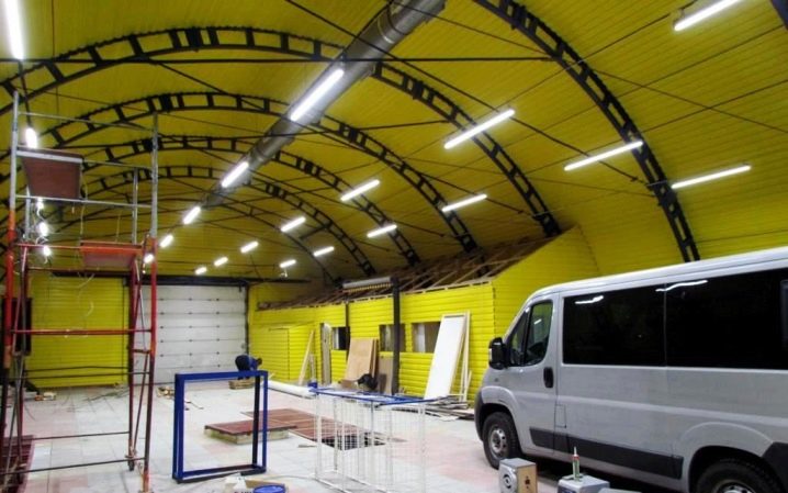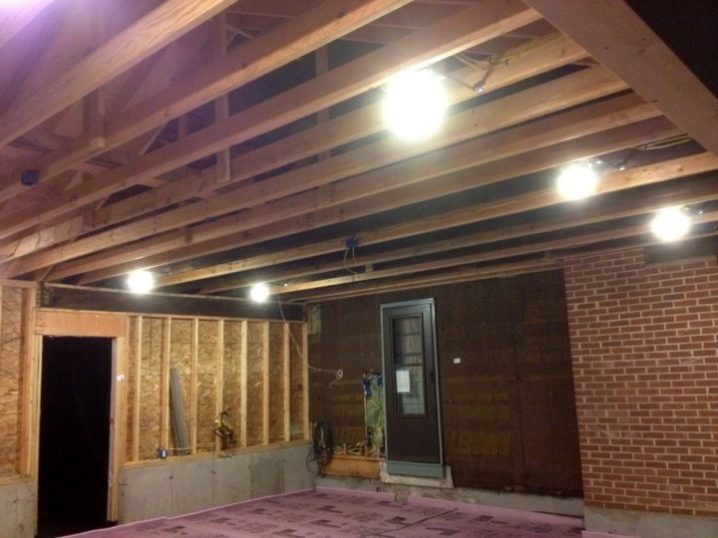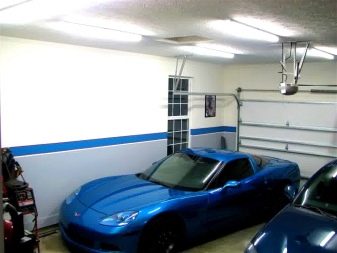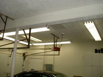 - إذا تجاوز ارتفاع السقف في المرآب ثلاثة أمتار ، فسيكون من الممكن اختيار الإضاءة وتركيبها على “درجات” مختلفة ؛