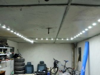 لتنظيم إضاءة عالية الجودة في المرآب ، من الأفضل استخدام مصابيح LED. تعود شعبيتها إلى سطوعها وكفاءتها في استخدام الطاقة. من خلال وضع العديد من هذه المصابيح حول المحيط على مسافة قصيرة من السقف ، يمكنك إضاءة جميع أجزاء المرآب. تركيب أجهزة الإضاءة هذه ليس مشكلة. يمكنك القيام بذلك بأيديكم دون إشراك المتخصصين..