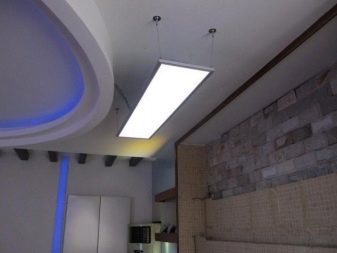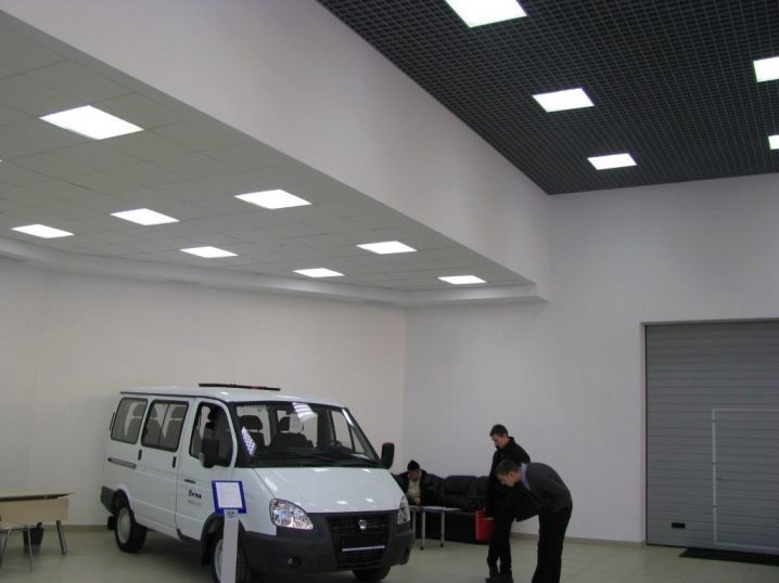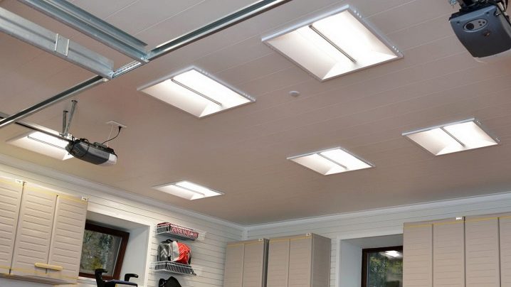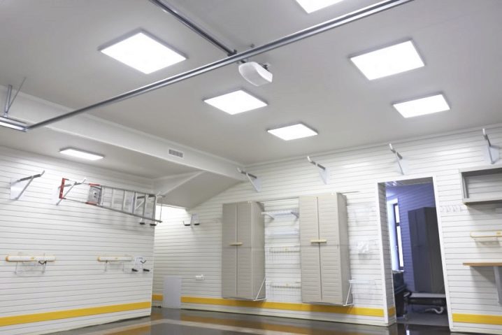 في المرائب ذات الارتفاع المنخفض ، يمكنك تثبيت الإضاءة التي ستكون على نفس مستوى السقف تقريبًا. ستؤدي مصابيح السقف المسطحة المربعة أو المستطيلة وظيفتها على أكمل وجه. إنهم قادرون على خلق إضاءة متساوية في المرآب. من الأفضل تثبيت هذه المصابيح على التوالي على مسافة لا تزيد عن 1.5 متر من بعضها البعض..