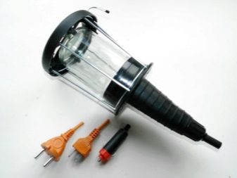 - مصابيح محمولة, مزودة بخطاف خاص يمكنك من خلاله تثبيت الجهاز في المكان المطلوب. الحمل هو خيار مقاوم للانسكاب يمكن وضعه بسهولة أينما ذهبت.
