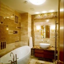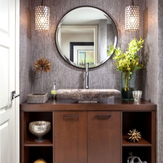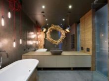الحمامات مؤثثة بأنماط مختلفة تمامًا ، على التوالي ، ويتم اختيار أجهزة إضاءة مختلفة لها. في مكان ما ، من المناسب استخدام مصابيح معلقة خيالية ، في مكان ما – ضوء كشاف متواضع..
