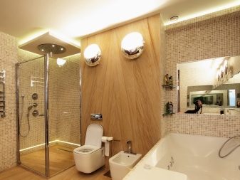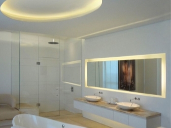 في الحمامات الحديثة ، من المعتاد تركيب ليس فقط إضاءة علوية ، ولكن أيضًا إضاءة محلية..
