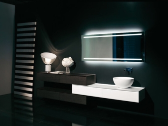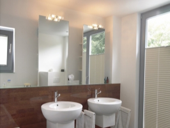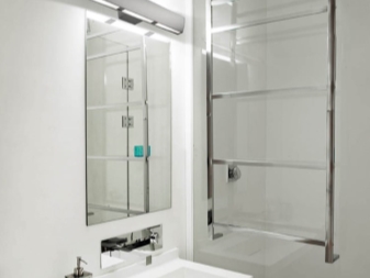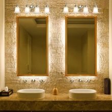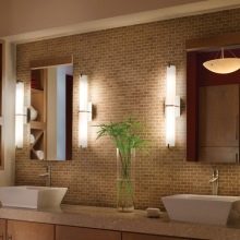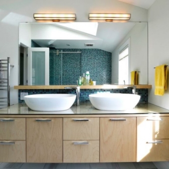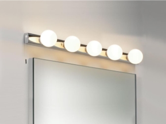 لإضاءة المرآة لا تستخدم عادة المصابيح الكبيرة. النماذج مثبتة على طول محيط المرآة ولا تتجاوز أبعادها. غالبًا ما يكون المصباح الطويل أصغر من جوانب المرآة ، بغض النظر عن مكان تركيبه: علوي أو سفلي أو جانبي.