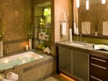 الضوء الساطع في الحمام ليس مناسبًا دائمًا. في بعض الأحيان يكون من الضروري خلق جو من الاسترخاء مع ضوء خافت خفيف. كقاعدة عامة ، هذا هو بالضبط التأثير الذي يتم تحقيقه في صالونات السبا ، ومن الممكن تمامًا إعادة إنتاجه في المنزل. الشيء الرئيسي هو أن تتذكر عدد المصابيح التي يجب أن تكون في الغرفة ومقدار الإضاءة التي يجب أن يعطيها كل منها..