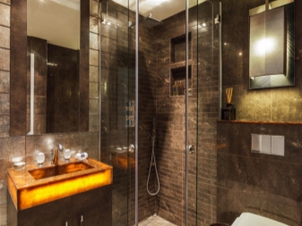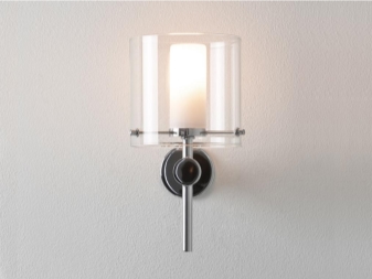 مع وجود الطرز في علبة زجاجية ، يكون الوضع عكس ذلك تمامًا. يتحمل الزجاج درجات الحرارة القصوى والرطوبة العالية ، وهو إلى حد بعيد الخيار المفضل للحمامات. يتكيف كل من الاختلافات غير اللامعة والشفافة بشكل جيد مع وظائف الحماية ، والفرق الوحيد هو في نعومة الضوء: في الحالة الأولى ، يكون التدفق الضوئي أكثر حدة ، وفي الحالة الثانية ، يكون منتشرًا.