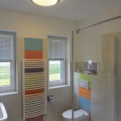 في حدود 60 سم من الحوض و 60 سم من الحمام أو الدش ، يُسمح بتركيب مصابيح ذات تصنيف IP44 أقل ، محمية من رذاذ الماء.