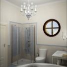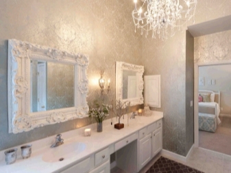 على الرغم من حقيقة أن ضوءها لا يكفي في بعض الأحيان ، لا يتم تشجيع استخدام الإضاءة الإضافية. أكثر ما يمكنك تحديده هو إرفاق زوج من الشمعدانات الجدارية ذات التصميم الكلاسيكي في منطقة المرآة أو على جوانب الحمام. يتم اختيار الزجاج أو الكريستال مع قاعدة معدنية مزورة كمادة للثريا..