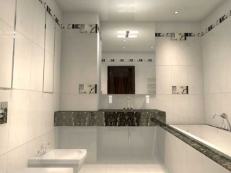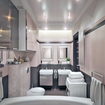 البلاستيك ، على العكس من ذلك ، “يترسخ” جيدًا في الحمامات. لطالما أصبحت الهياكل العلوية المصنوعة من الألواح البلاستيكية مع حشوة LED كلاسيكية من هذا النوع لتزيين الحمامات..