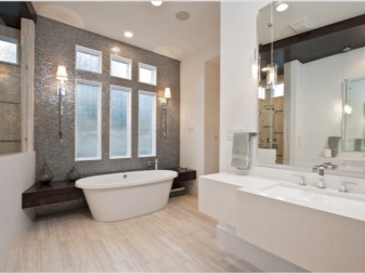 في الحمامات الكبيرة ، في الأماكن التي لا تحصل فيها الرطوبة ، يمكنك وضع مصباح أرضي. سوف ينير المناطق المظلمة بشكل خاص ، مما يخلق المستوى الضروري من السطوع في الغرفة.