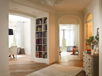 يمكن أن يحتوي جهاز قوس الباب من القاعة إلى المطبخ على منافذ بها أرفف يمكنك تخزين أي شيء عليها: من الأطباق والمزهريات إلى الكتب وصناديق المستندات. في التصميم الداخلي البسيط ، ستبدو المنطقة التي تحتوي على عدد متزايد من التفاصيل الصغيرة غير عادية للغاية. يمكن قول الشيء نفسه عن غرف المعيشة ذات الطراز العلوي..
