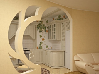 إذا تم تثبيت الفتحة المقوسة في المطبخ ، فقد يحتوي جزء منها ، بالإضافة إلى الأرفف المدمجة ، على آليات معدنية خاصة لحمل الأشياء الصغيرة مثل الأكواب ، والأكواب ، ومناشف الشاي ، والمناديل أو ، على سبيل المثال ، الأواني الصغيرة مع تتفتح البنفسج. هذا الجهاز يشبه المنزل للغاية. خاصة للمطابخ الريفية أو بأسلوب بروفانس الشهير الآن.