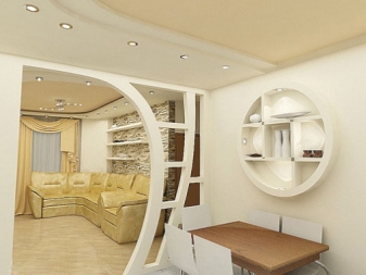 يمكن أن يحتوي جهاز قوس الباب من القاعة إلى المطبخ على منافذ بها أرفف يمكنك تخزين أي شيء عليها: من الأطباق والمزهريات إلى الكتب وصناديق المستندات. في التصميم الداخلي البسيط ، ستبدو المنطقة التي تحتوي على عدد متزايد من التفاصيل الصغيرة غير عادية للغاية. يمكن قول الشيء نفسه عن غرف المعيشة ذات الطراز العلوي..
