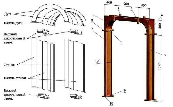 يمكنك تثبيت الأقواس القياسية أو جعلها تطلب وفقًا للرسم الخاص بك. تأتي الهياكل الجاهزة مسبقة الصنع في أشكال متنوعة وأحجام قياسية ومصنوعة من مواد رخيصة الثمن. للتصنيع ، يتم استخدام MDF في كثير من الأحيان. لا يستغرق تركيب هذه الهياكل الكثير من الوقت. ومع ذلك ، من أجل التثبيت الصحيح وعالي الجودة ، يُنصح باستخدام نصيحة أحد المحترفين..