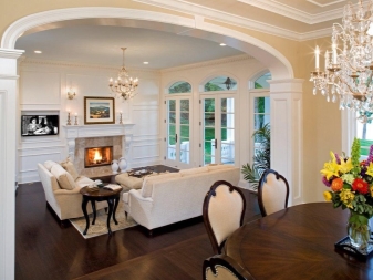 من خلال تثبيت قوس في الممر عند الانتقال إلى غرفة المعيشة أو القاعة ، يمكنك تحقيق توسيع بصري للمساحة. في المنازل الكبيرة ، تعمل هذه التقنية كعنصر زخرفي. الأقواس ذات الأشكال البسيطة والأشكال غير القياسية ، على سبيل المثال ، الأشكال البيضاوية أو التايلاندية ، مناسبة. في الشقق الصغيرة ، غالبًا ما يكون تركيب الفتحات المقوسة هو الحل الأفضل..