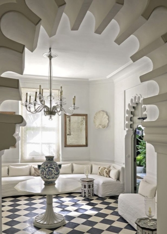 سيحب خبراء الثقافات العرقية التصميم الداخلي على الطراز التركي. الملامح الرئيسية لهذا النمط هي الملحقات الشرقية الجميلة ، ويمكن تزيين الجدران بأقبية مقوسة على الحائط. سوف تنسجم الأقواس الشرقية والكلاسيكية والهياكل على شكل هزاز مع هذا التصميم الداخلي. يمكن رسم الأقبية المقوسة بزخارف شرقية. لوحة الألوان الرئيسية هي ظلال من اللون الأحمر مع فتات ذهبية ، ورماد وردي ، وأبيض ، ولون ينجي.