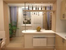 من الممكن أيضًا توسيع المساحة عن طريق تحويل لوجيا أو شرفة إلى منطقة قابلة للاستخدام. بطبيعة الحال ، يجب أن تكون الغرفة مغلقة ومعزولة. يمكن أن يشغل القوس الفتحة بأكملها أو جزء منها فقط. في الحالات التي يفتح فيها المطبخ على الشرفة ، يتم منح القوس أيضًا وظائف إذا قمت بإرفاق عداد شريط أو طاولة به. ستصبح هذه التقنية جزءًا مفيدًا من أدوات المطبخ..