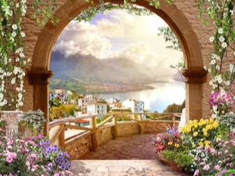 يمكنك أيضًا إنشاء تقليد لقوس باستخدام ورق الحائط. ستخلق اللوحات الجدارية المذهلة التي تصور الأقواس إحساسًا بالنظر إلى العالم المتنوع لتاريخ الحضارة الإنسانية. من الممكن اختيار الصور حسب الطلب في النمط الداخلي المناسب. ستصبح الغرفة في هذا التصميم بالتأكيد راقية وفريدة من نوعها..