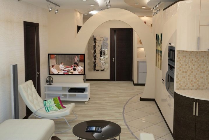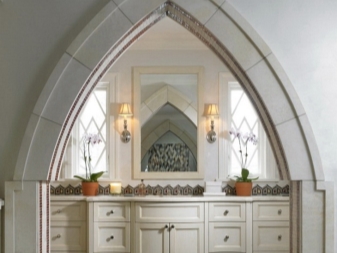 في الشقق الصغيرة ، غالبًا لا توجد مساحة كافية للأبواب المفتوحة. لهذا السبب ، بدلاً من الباب ، يتم تثبيت قوس جميل ومقتضب في الفتحة. تعمل هذه الأقواس كنوع من الحدود بين الغرف المجاورة ، حيث كان الباب في السابق ، وفي الواقع تعمل على توسيع المساحة الحرة..