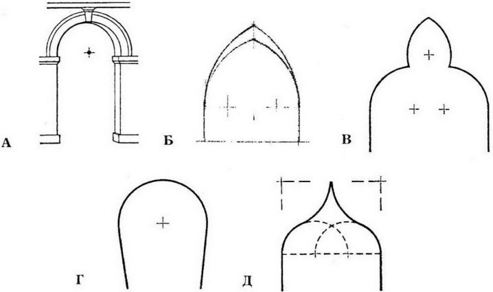 باستخدام حساب تجريبي ، تحتاج أولاً إلى قياس فتح الباب ونقله إلى ورقة. يتم رسم محور التماثل في المدخل. ثم يأخذون البوصلة ويضعون ساقها على نقطة المحور ويقومون بعدة دوائر مختلفة. يتم اختيار أنسبها ، ويتم إزالة الباقي بمساعدة شريط مطاطي..