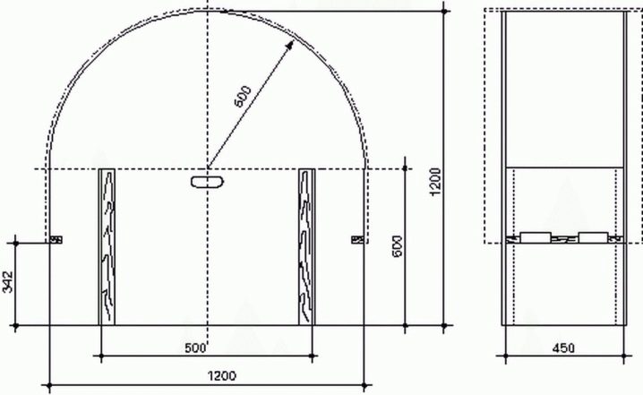 بعد إجراء الحساب بالكامل وتحديد المشروع ، سيصبح من الممكن تخيل شكل الهيكل بشكل مرئي. إذا لزم الأمر ، يمكنك إعادة قياس معلمات الفتح وتصحيح الحسابات بسهولة ، وتعديل الرسم حتى يتناسب مظهره تمامًا مع المعالج.