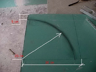 عندما يكون المشروع جاهزًا ، يبدأون في توسيع نطاق المنتج على الحوائط الجافة. مع الحفاظ على نسب المنتج ، يتم رسم تخطيط القوس في المعلمات المحددة. قطع قطعة من دريوال بالحجم المطلوب. للقيام بذلك ، استخدم سكينًا خاصًا على طول الخط المرسوم واقطع الأجزاء الزائدة من الحوائط الجافة بيديك..