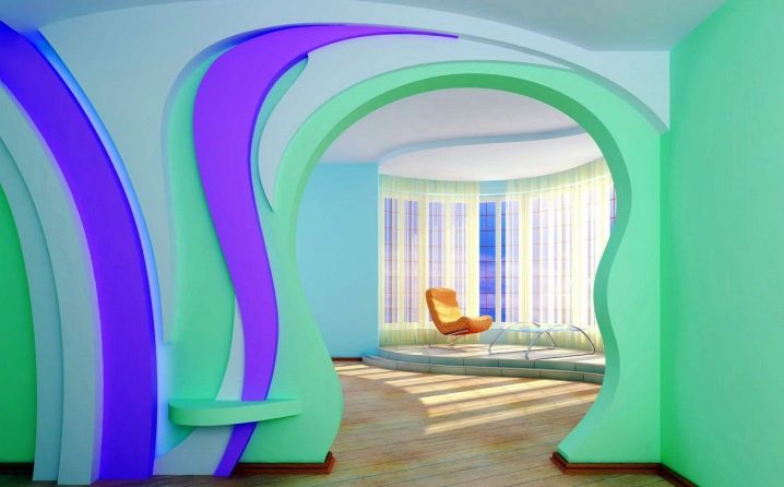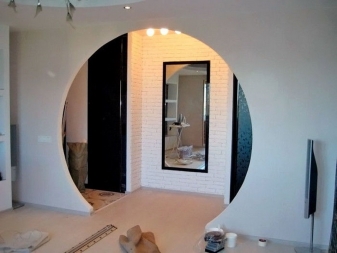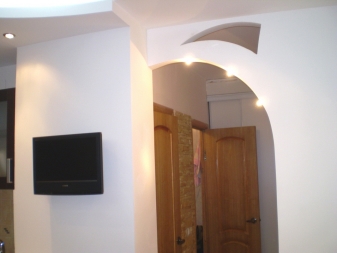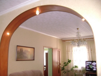 المصممون الحديثون ، الذين يستفيدون من الخاصية الممتازة للمادة ، يصنعون حلولًا أصلية تمامًا. الأقواس الداخلية تكملها الإضاءة الأصلية ومصابيح LED. غالبًا ما لا تلعب هذه العناصر دورًا زخرفيًا فحسب ، بل تخلق أيضًا إضاءة محلية إضافية في الشقة..