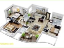 إن لم يكن معظمها ، فإن الكثير من مشاريع هذه المنازل تتضمن العثور على ثلاث غرف نوم في جانب واحد من المنزل. أي أن المنزل مقسم بشكل مشروط إلى أجزاء وظيفية وتجمع المنطقة الليلية بين ثلاث غرف نوم. ويحب الناس هذا النهج ، لأنه يبسط المساحة.. هذا مريح حقًا: لن تتعايش غرفة المعيشة الصاخبة نسبيًا مع غرفة النوم الهادئة. لكن هناك أيضا شكوك.