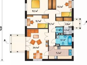يتضمن إنشاء مخطط منزل بحجم 12 × 10 مترًا العديد من الحلول القياسية والاختلافات الشائعة النموذجية لمثل هذه المنازل المكونة من طابق واحد
