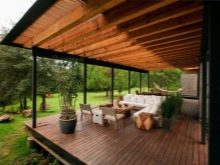 يمكن أن يكون للتراس أساسه الخاص ، وبصورة أدق ، يمكن أن يقف على أكوام ، أو يوضع على أساس مشترك مع المنزل. في الهواء الطلق في الموسم الدافئ ، سيكون هذا مكانًا مفضلاً للأسر ، وحجم التراس ليس مهمًا جدًا.