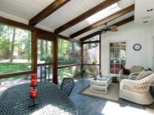 تعتبر المناطق الداخلية أيضًا مثيرة للاهتمام للاستخدام ، حيث أنها توفر مكانًا للاسترخاء في أي وقت من السنة.. إنه رومانسي بشكل خاص هنا في المساء ، في ساعات الغروب يمكنك الاجتماع مع جميع أفراد الأسرة أو الاستمتاع بالعزلة. ولكن سيتم تقليل إضاءة المنزل من الجانب الذي يقع فيه التراس.