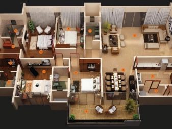 غالبًا ما يتم استخدام هذا الخيار: تنطلق “الأكمام” من غرفة المعيشة ، أحدهما للوالد ، والثاني هو الطفل. بالإضافة إلى غرف النوم ، يمكن أن يحتوي قسم الأطفال على غرفة ألعاب ، أو الغرف منفصلة – للأطفال غرفة نوم واحدة لشخصين ، والثانية بها غرفة ألعاب. لا يمكن أن يشمل “غلاف” الوالدين غرفة النوم فحسب ، بل المكتب أيضًا. في بعض الأحيان يتم تقسيم الغرفة إلى قسمين بحيث تصبح الدراسة غرفة تجول لغرفة النوم ، أو العكس.