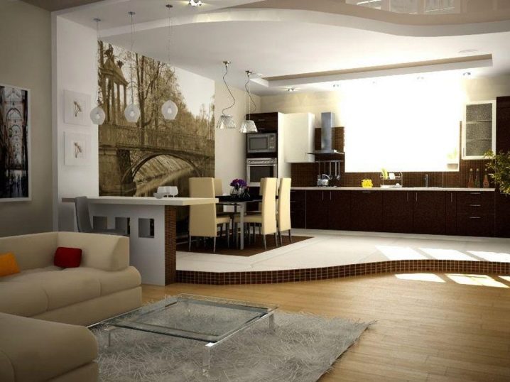 - يعد الجمع بين المطبخ وغرفة المعيشة خيارًا لن يفاجئ أحد اليوم.. لكن النقطة ليست في أصالتها ، ولكن في تنوعها وفعاليتها. العديد من العائلات تقدر هذا الخيار. لا تتشتت الأسر المعيشية في غرفها فحسب ، بل تتحد في نفس الوقت ، ولكنها تنقسم بنجاح إلى مناطق فضاء. لذلك فالأم ، على سبيل المثال ، التي تحضر العشاء ، لا تشعر بالانفصال عن الأطفال الذين يلعبون في غرفة المعيشة ، عن أفراد الأسرة الآخرين. تواصل أكثر فأكثر مع بعضكما البعض ، وهذه ميزة عظيمة بحد ذاتها..