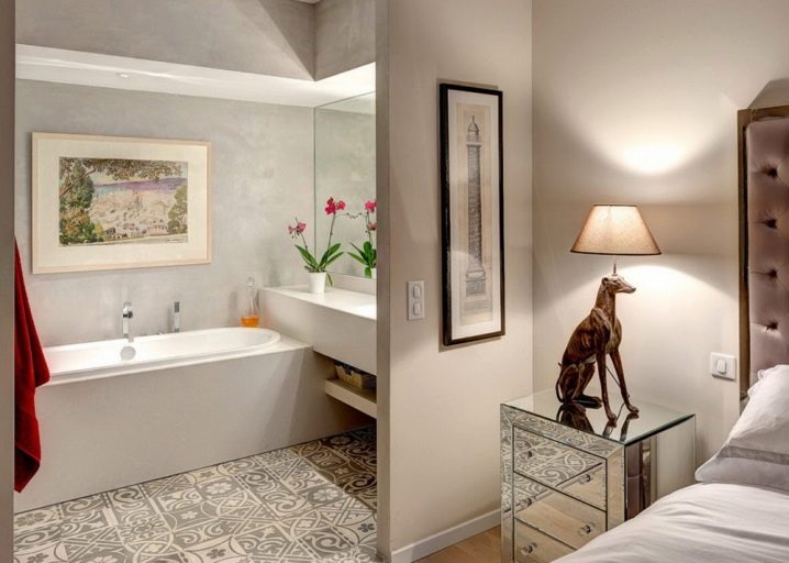 - مثالي إذا كان هناك مكان لحمام منفصل وغرفة تبديل ملابس في غرفة نوم الوالدين. ليس من الصعب حقًا إنشاء حمام في مكان قريب ، وبالنسبة للعديد من مالكي المنازل المكونة من طابق واحد ، فإن هذه الرغبة للمصممين هي واحدة من الأولى. لكن في بعض الأحيان لا يعرفون شيئًا عن غرفة الملابس. ولكن إذا كنت تأخذ أكبر غرفة نوم لغرفة نوم الوالدين ، فمن الممكن بالفعل أن تأخذ بضعة أمتار إلى غرفة الملابس..